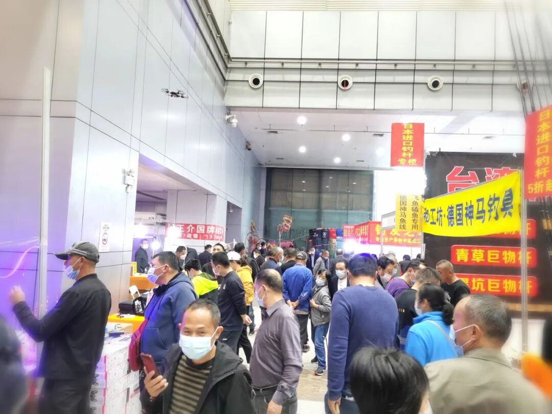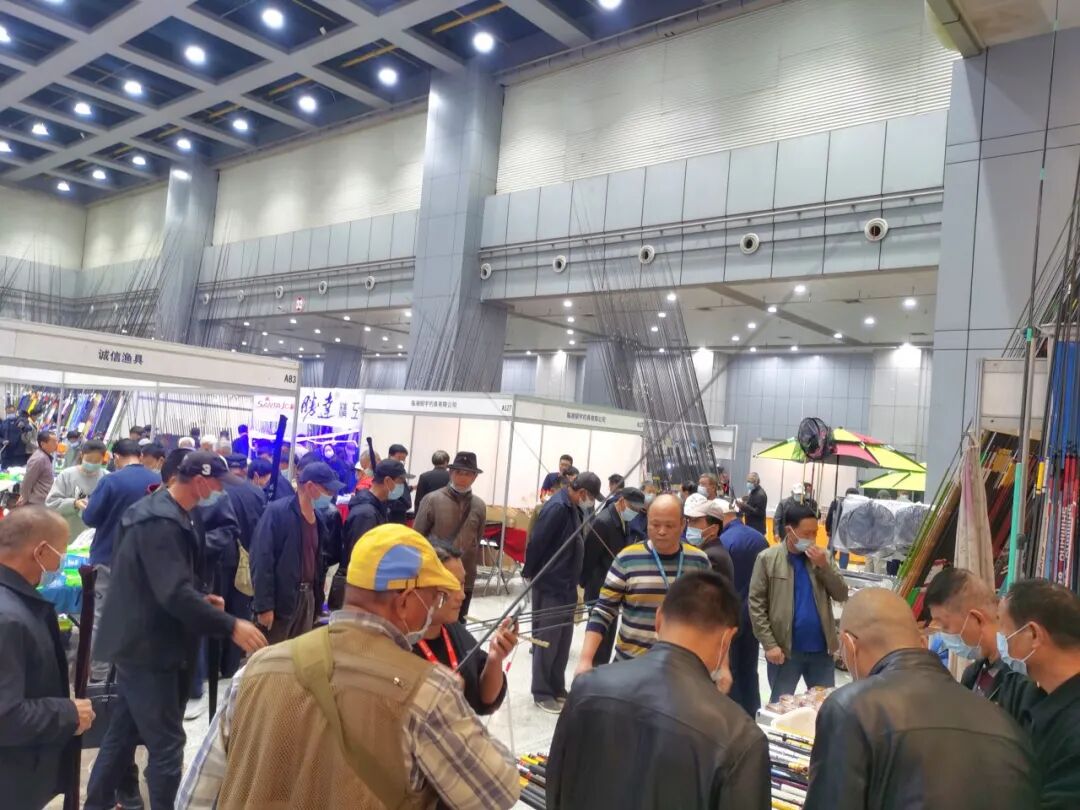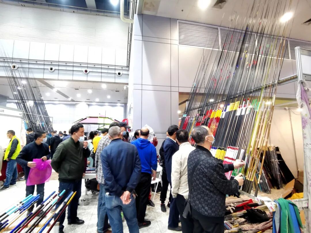 展馆内一番忙忙碌碌的景象。对钓友们而言,这里可谓是应有尽有,大到钓竿、鱼护、饵料、鱼钩等钓鱼必备用品,小到各种配件,都一应展出,包罗万象。想买配节和堵头的钓友一定要在家里量好鱼竿尺寸,或者干脆带着鱼竿去配零件,这样尺寸好把握。